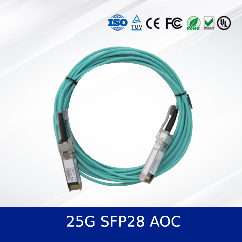 Câble optique actif 25G SFP28 AOC 3m Portée 100m, Faible consommation, Diagnostics numériques